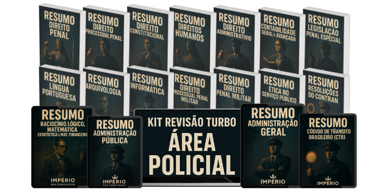 A ideia do KIT REVISÃO TURBO ÁREA POLICIAL surgiu depois de acompanhar de perto a dificuldade que muitos candidatos têm em estudar de forma prática e focada no que realmente cai nas provas.